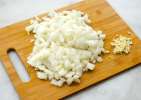 Curățăm ceapa și usturoiul și le tocăm mărunt